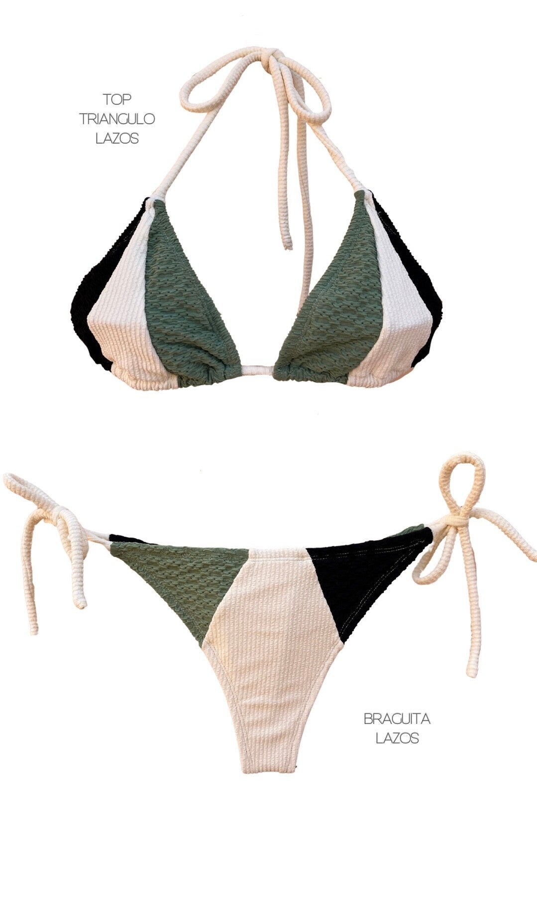 Top triángulo multiposición, con hueco para añadir foams, lazos para anudar en espalda/cuello.